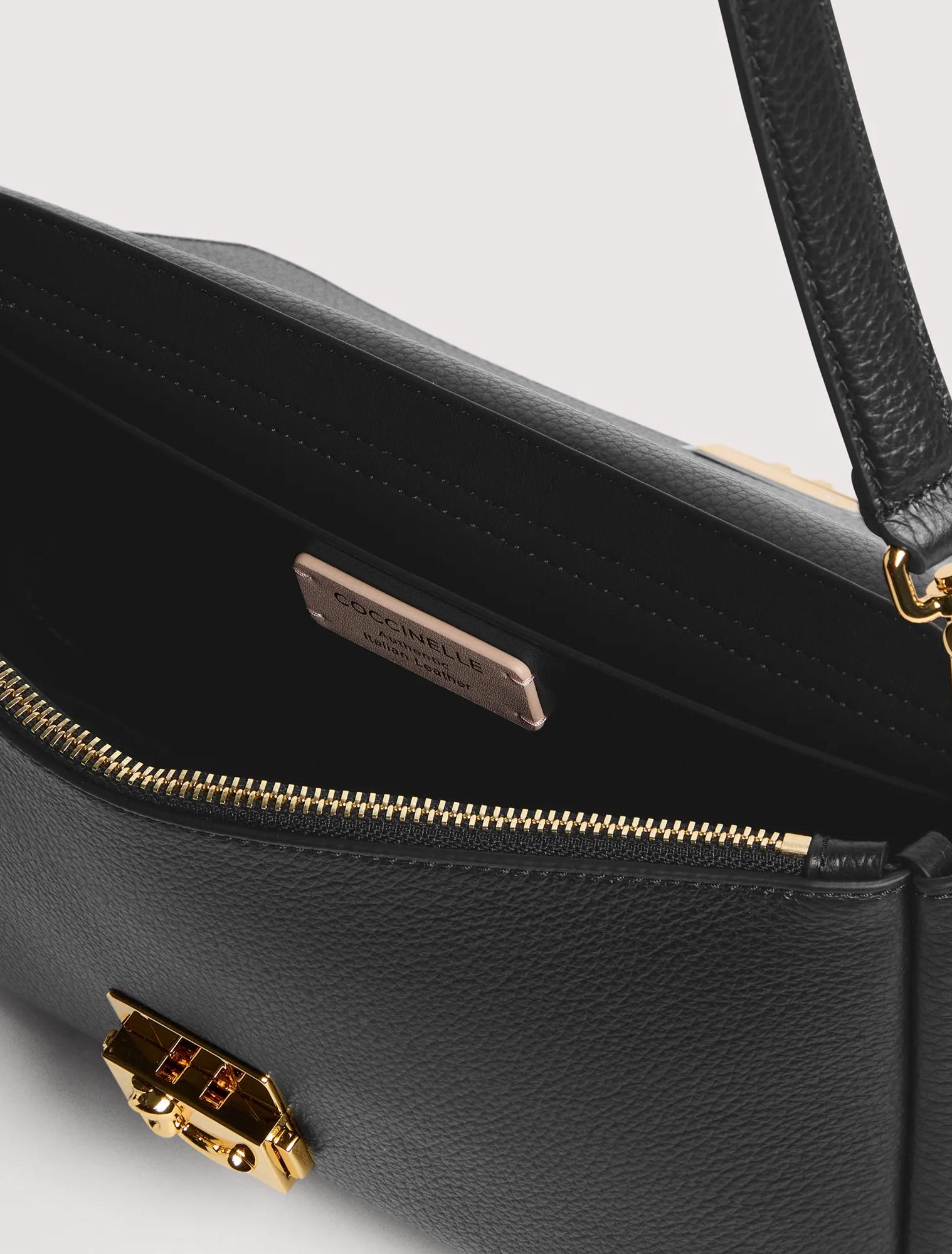 Due tasche interne, di cui una chiusa con zip