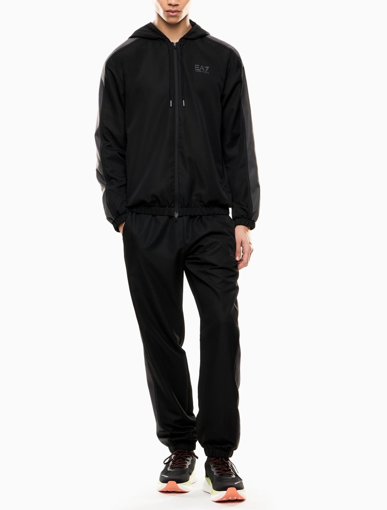 Felpa con cappuccio, chiusura con zip, due tasche laterali chiuse con zip, logo EA7 sul petto
