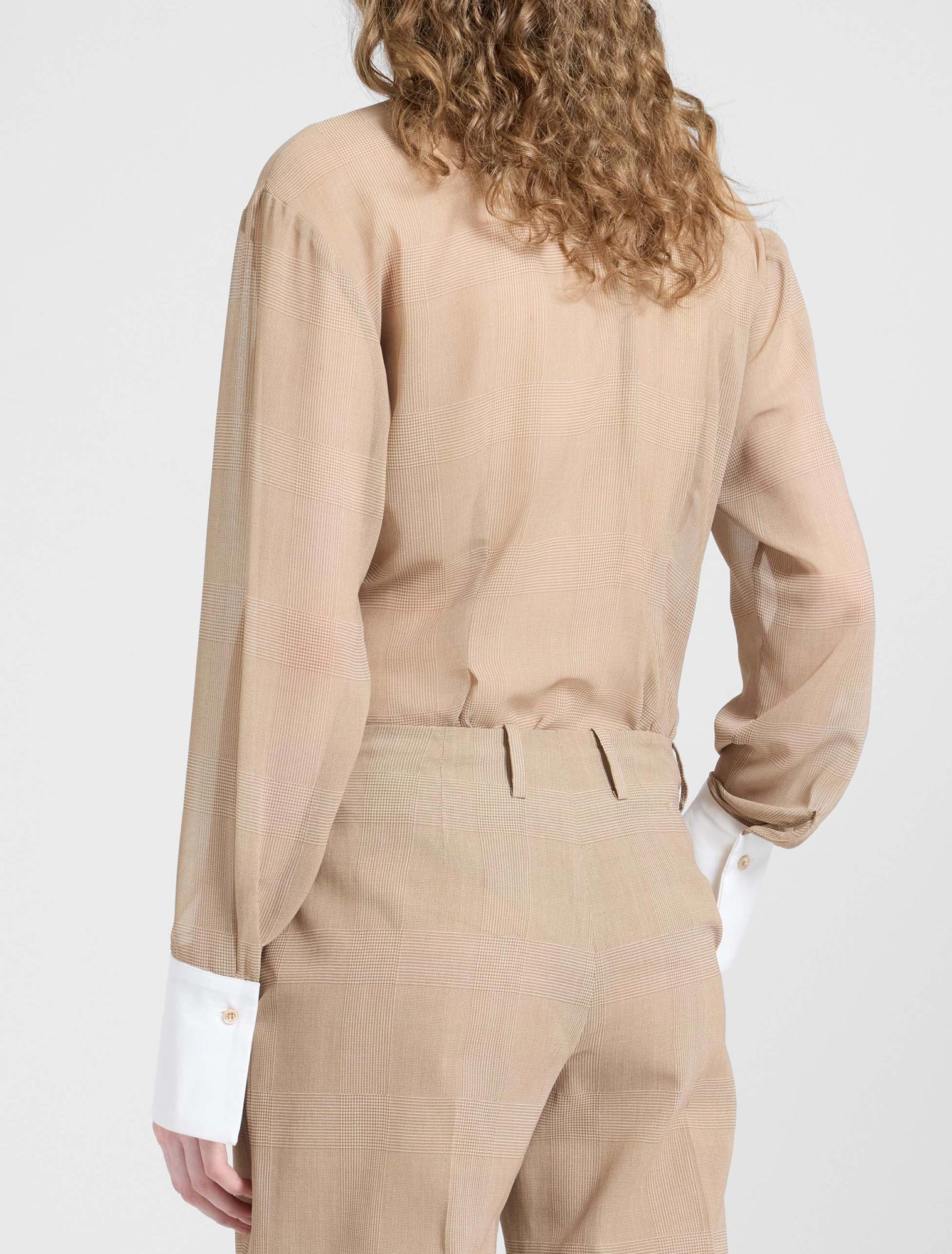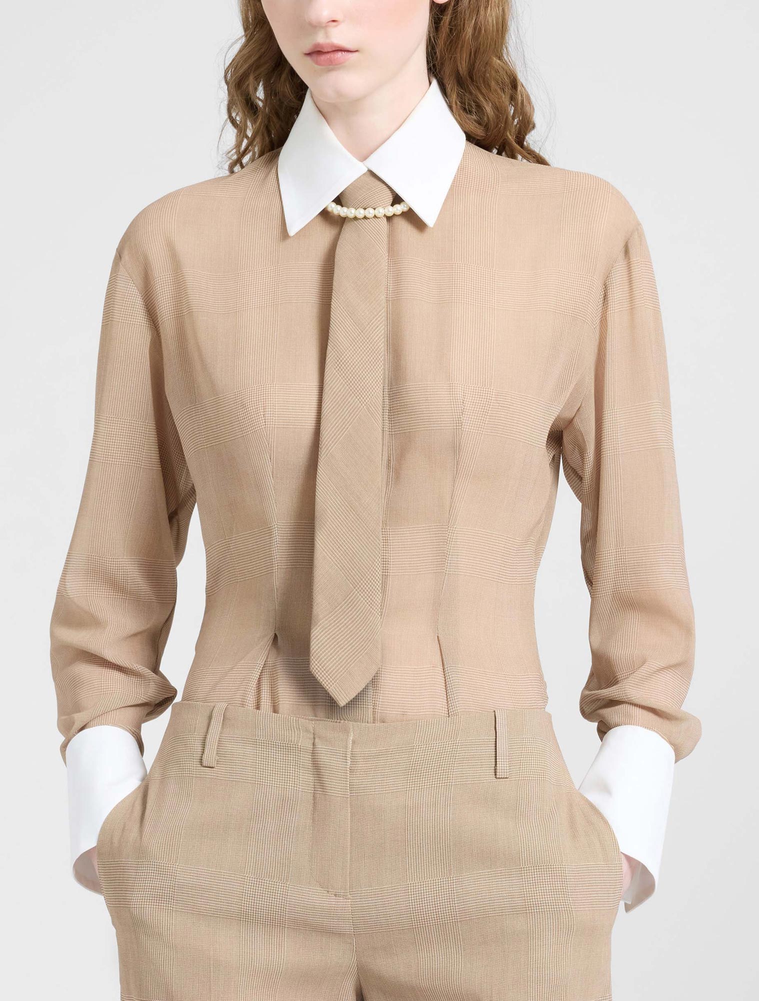 Stampa Principe di Galles beige e bianco allesterno, micro pied-de-poule allinterno