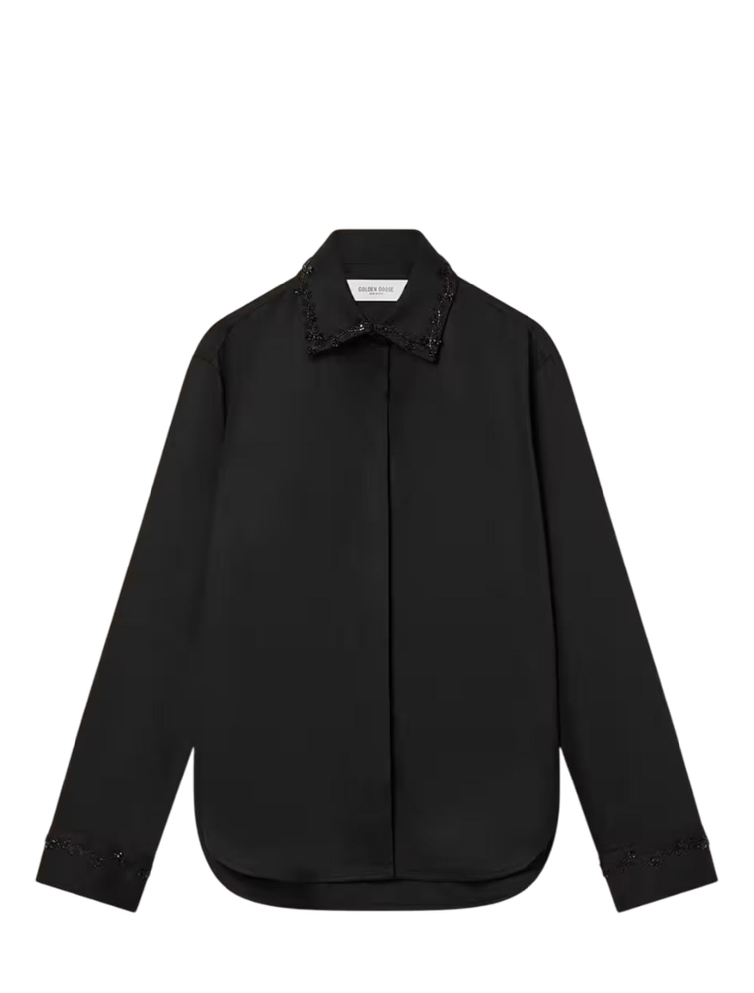 Colletto e polsini con ricamo floreale di perline in vetro ton sur ton