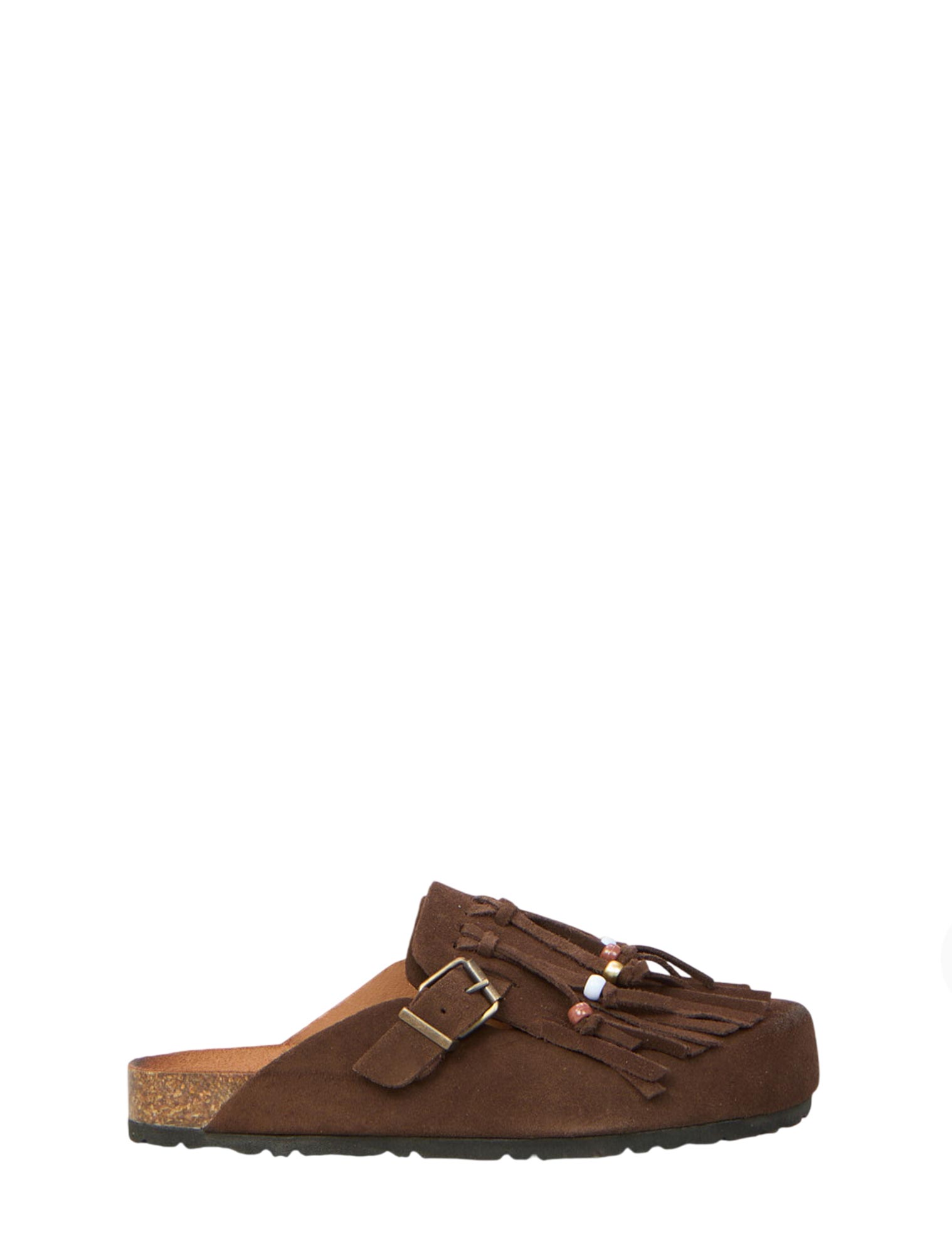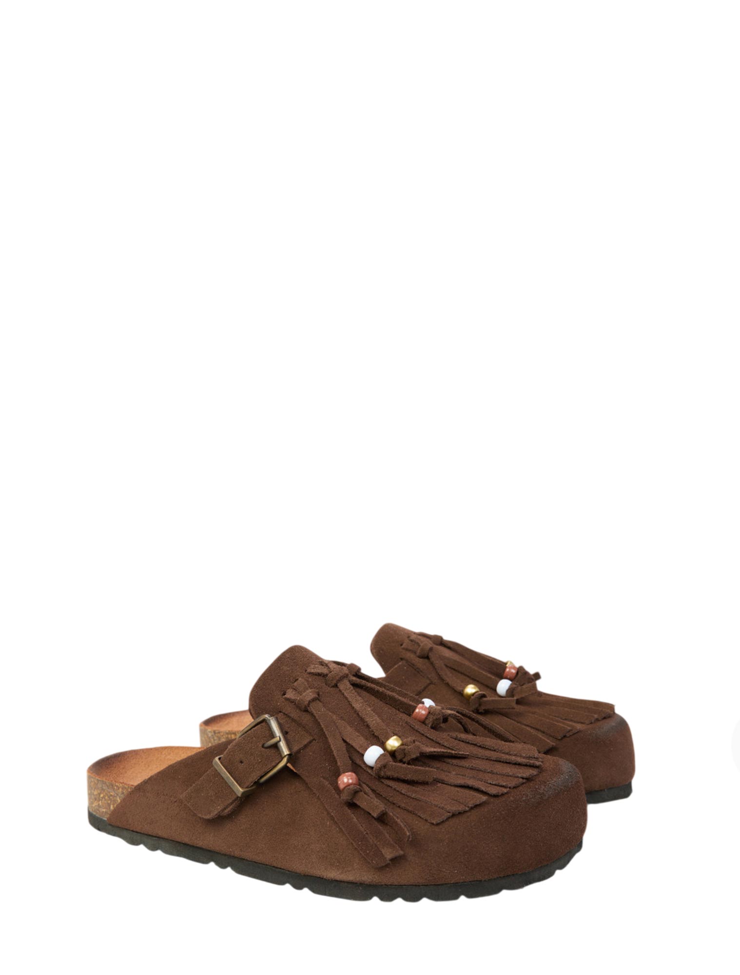 Mules in camoscio, frange, suola 3 cm