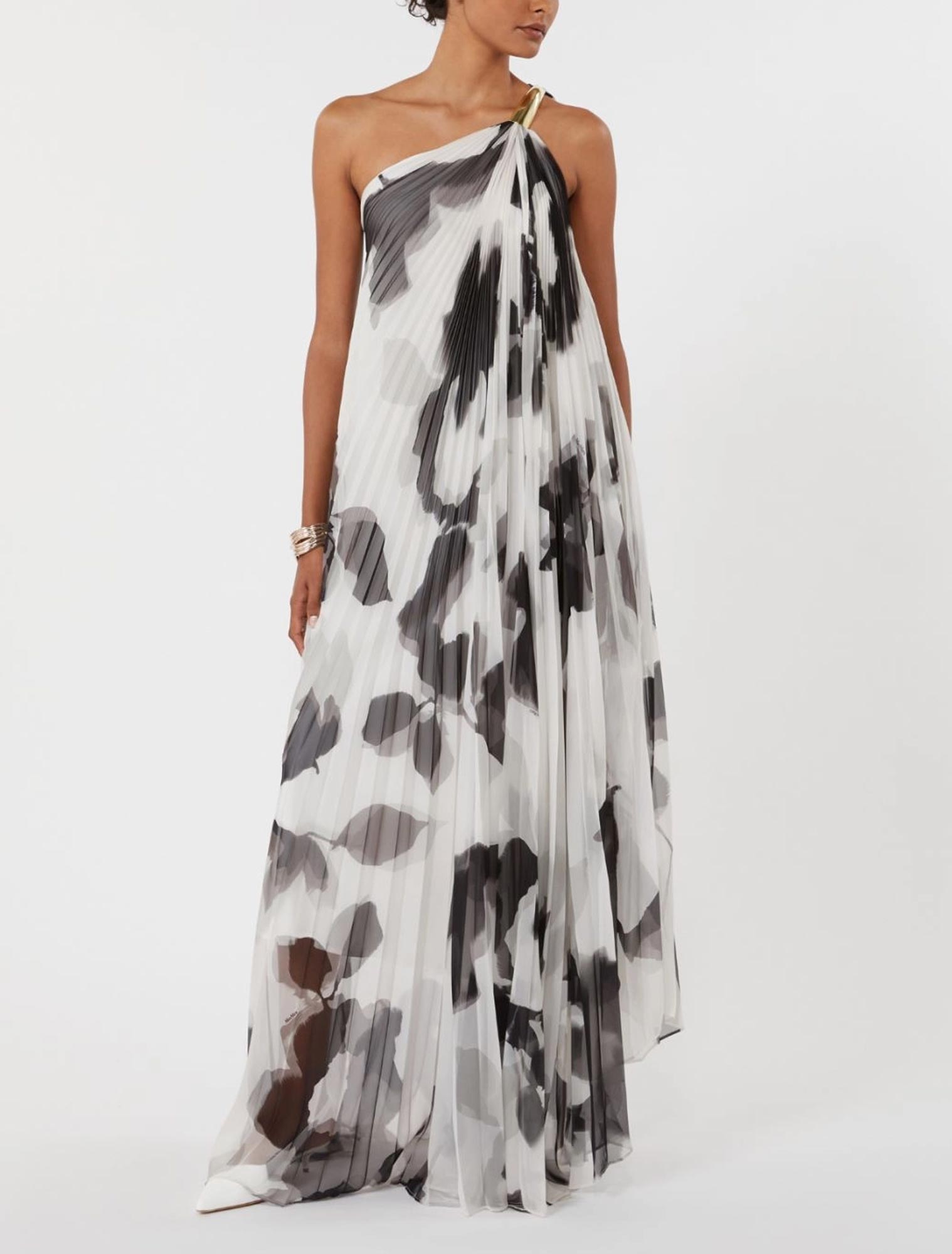 Scollo asimmetrico con dettaglio in metallo sulla spalla sinistra