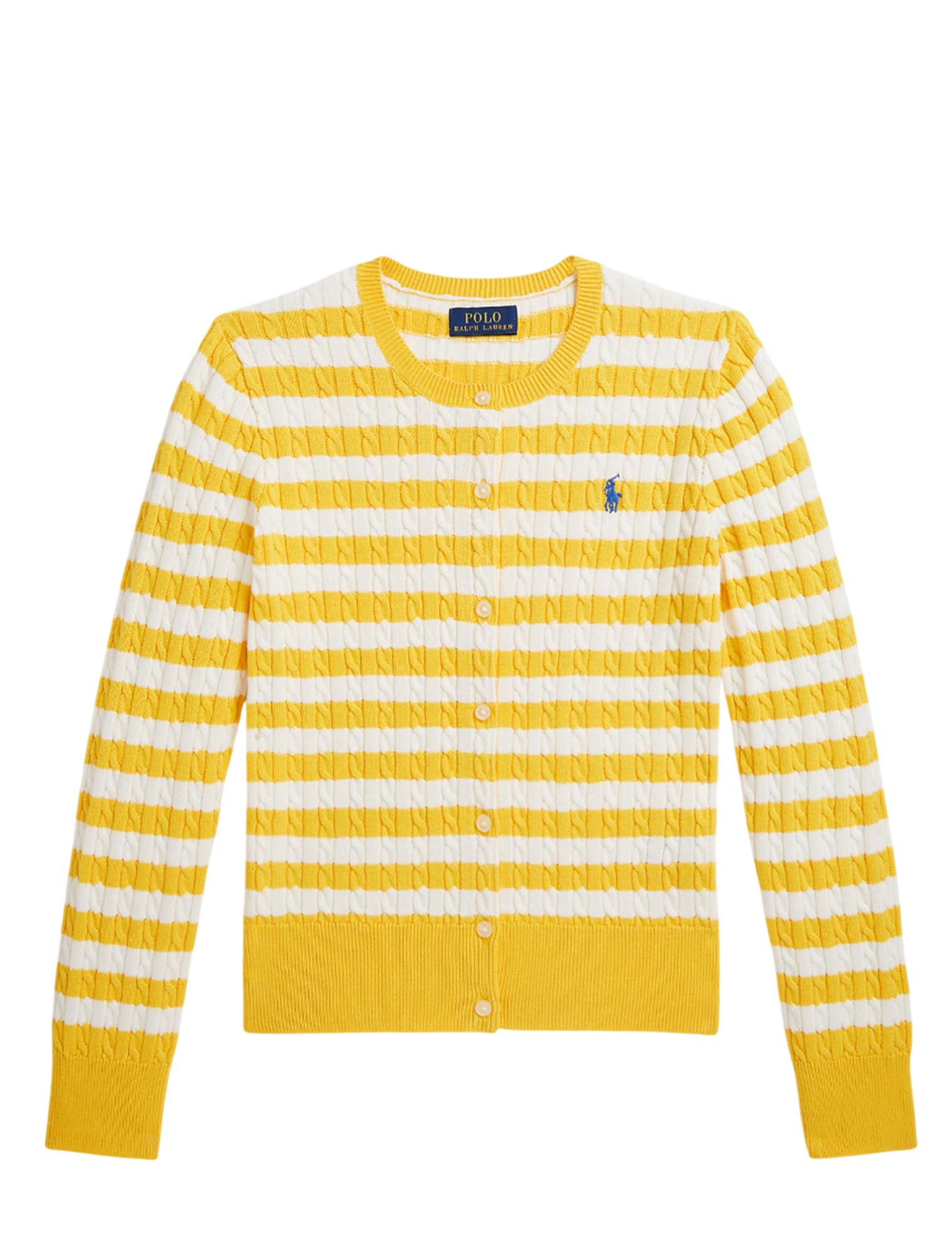 Cannoncino con bottoni. Esclusivi bottoni con logo "Ralph Lauren". Finitura in gros grain lungo l'interno della chiusura.