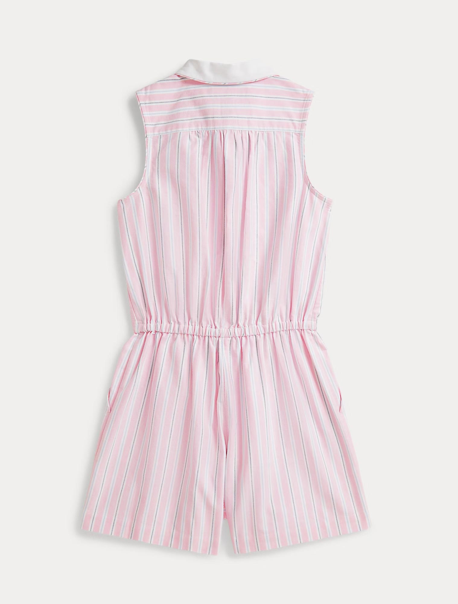 Colletto alla Peter Pan e finitura con profilo. Mezza chiusura con bottoni.
