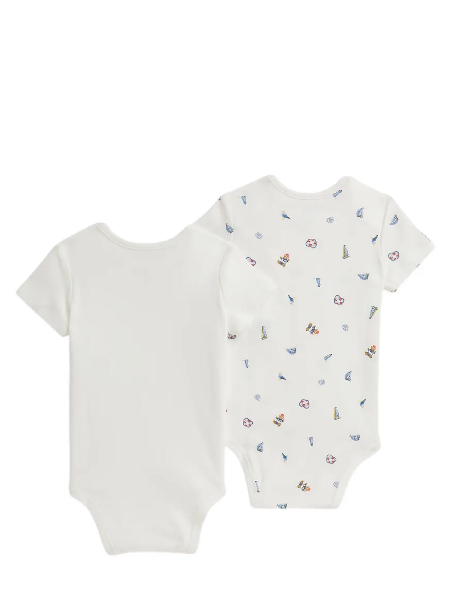 Polo Bear stampato al centro sul davanti di un body. Motivo alfabetico stampato all over sull'altro body per neonato.