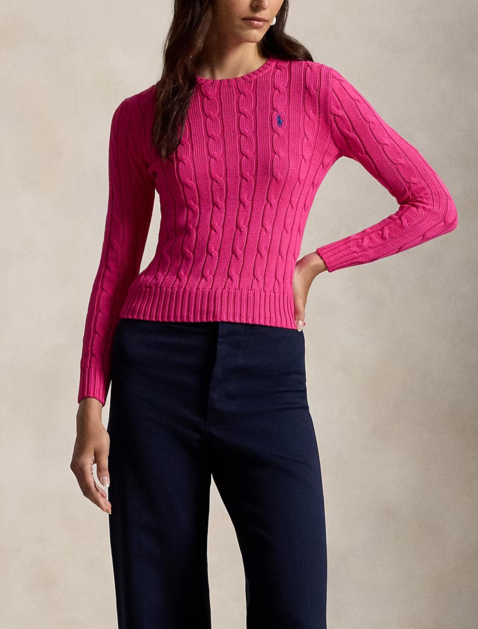 Maniche lunghe con polsini a coste. Orlo con lavorazione a coste. Esclusivo pony ricamato sul lato sinistro del torace.