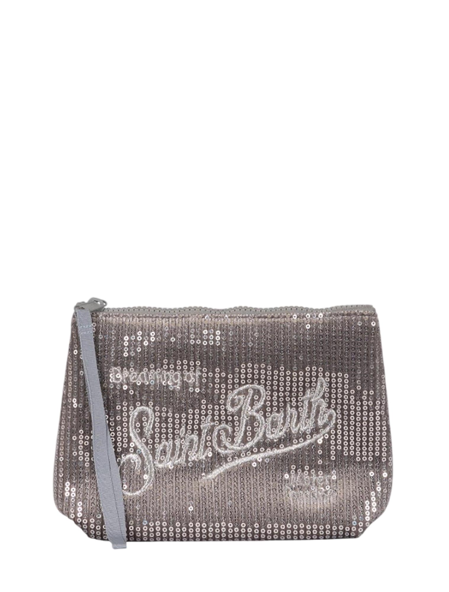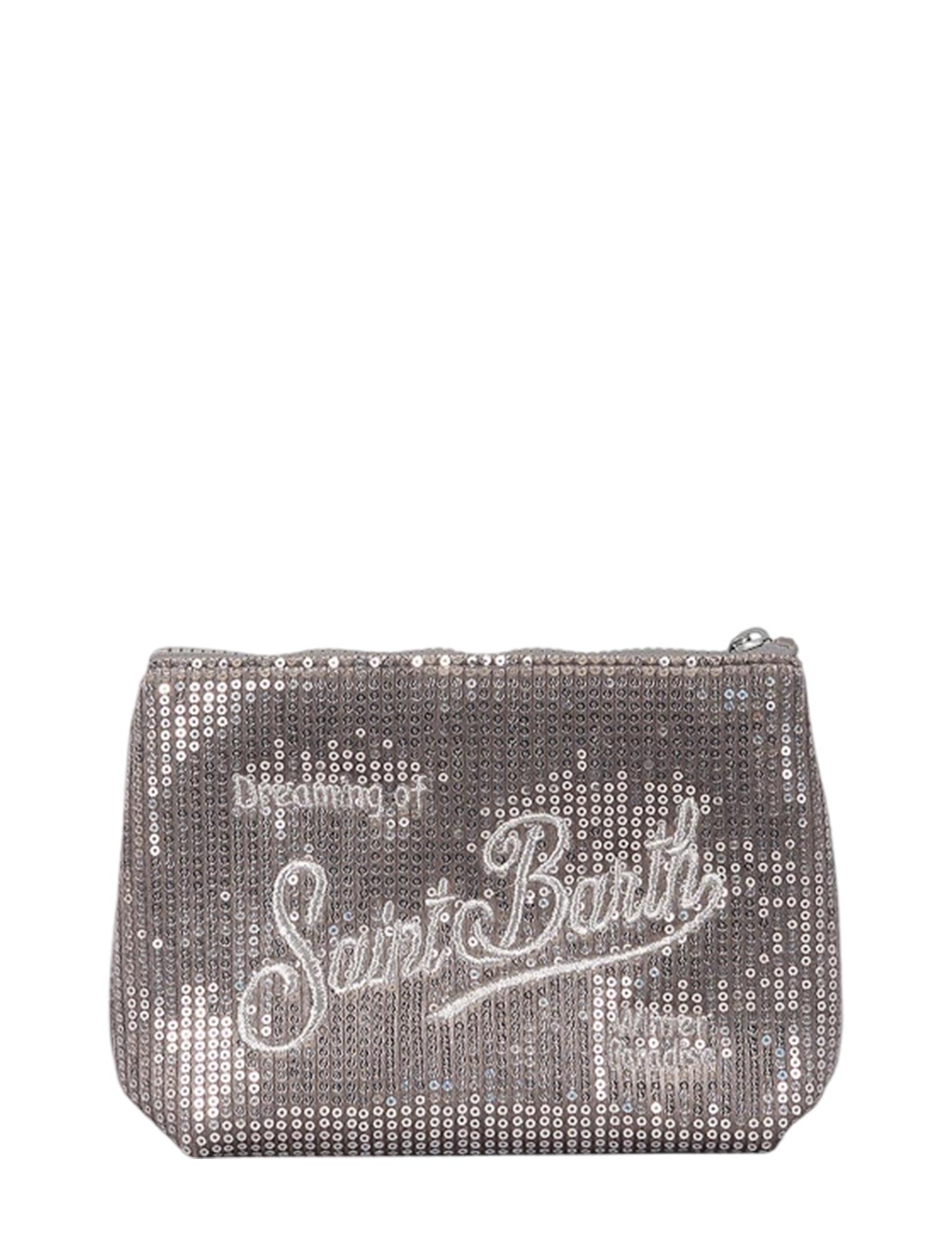 Pochette in tessuto scuba e velluto con paillettes