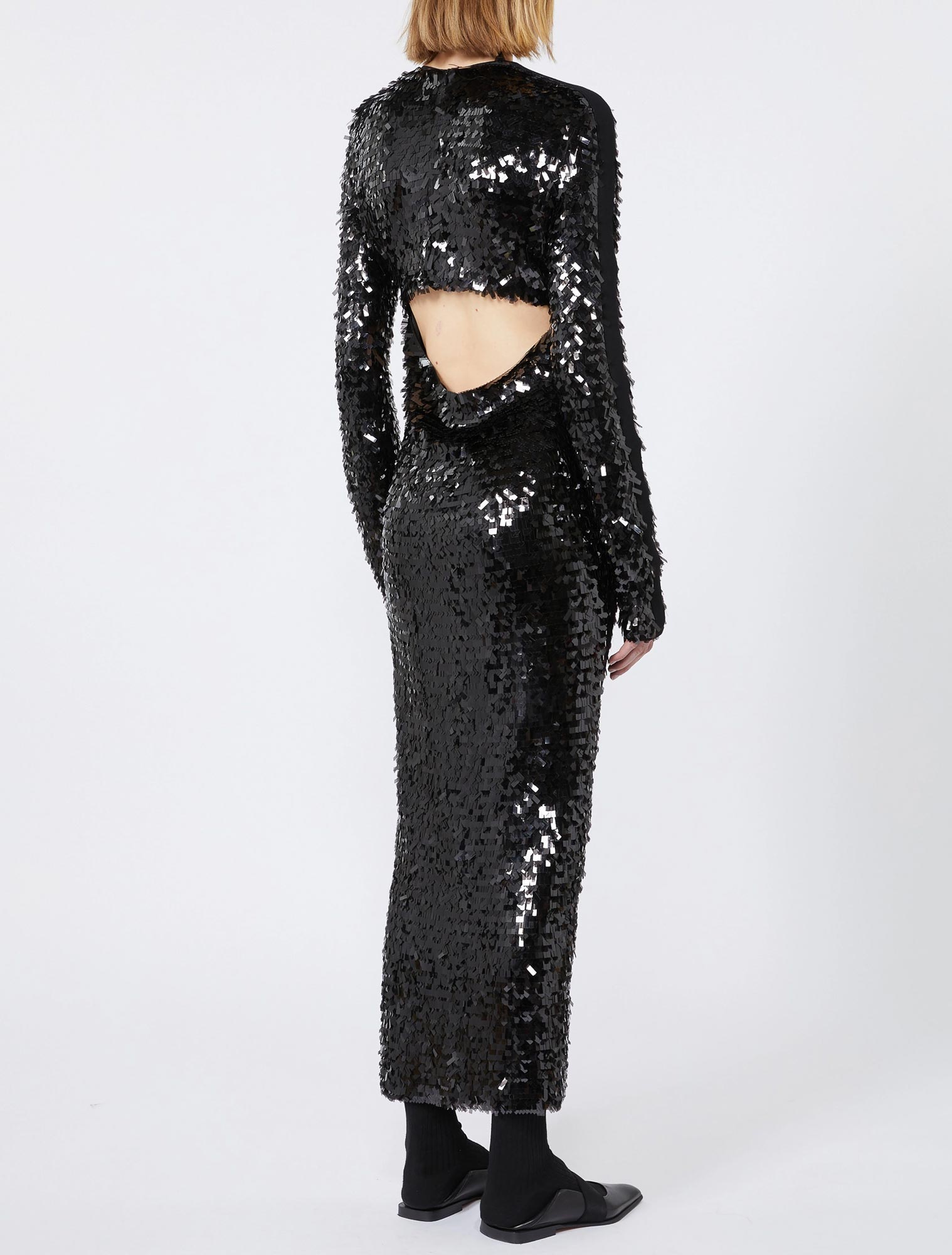 Abito in jersey ricamato all over con paillette rettangolari