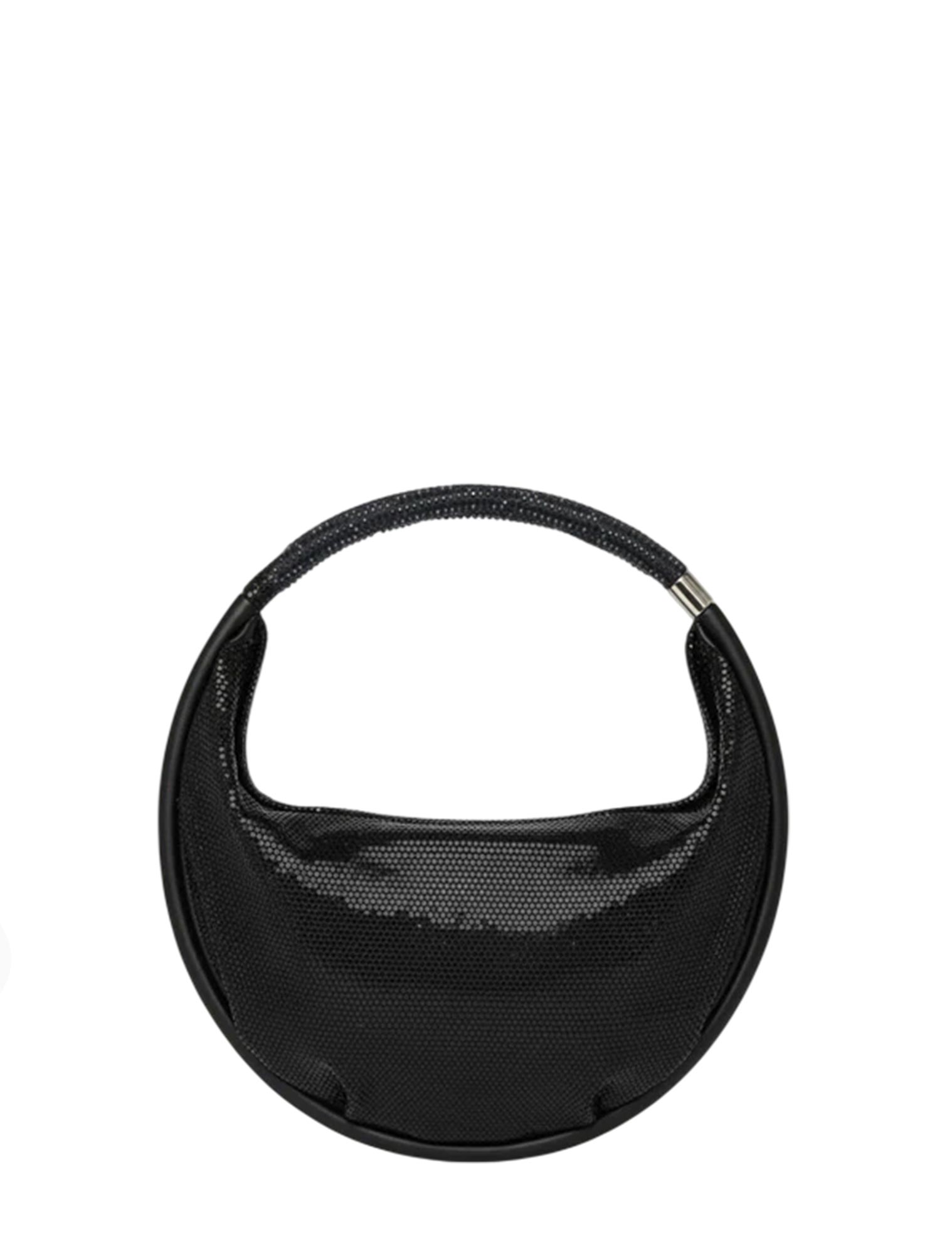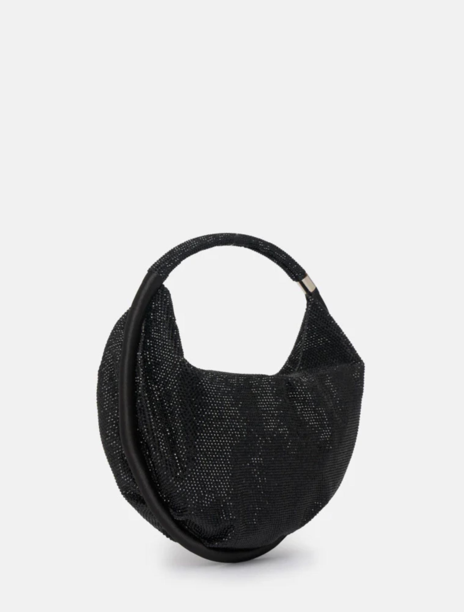 Borsa in materiale satin e glitter full strass con manico rigido gioiello.