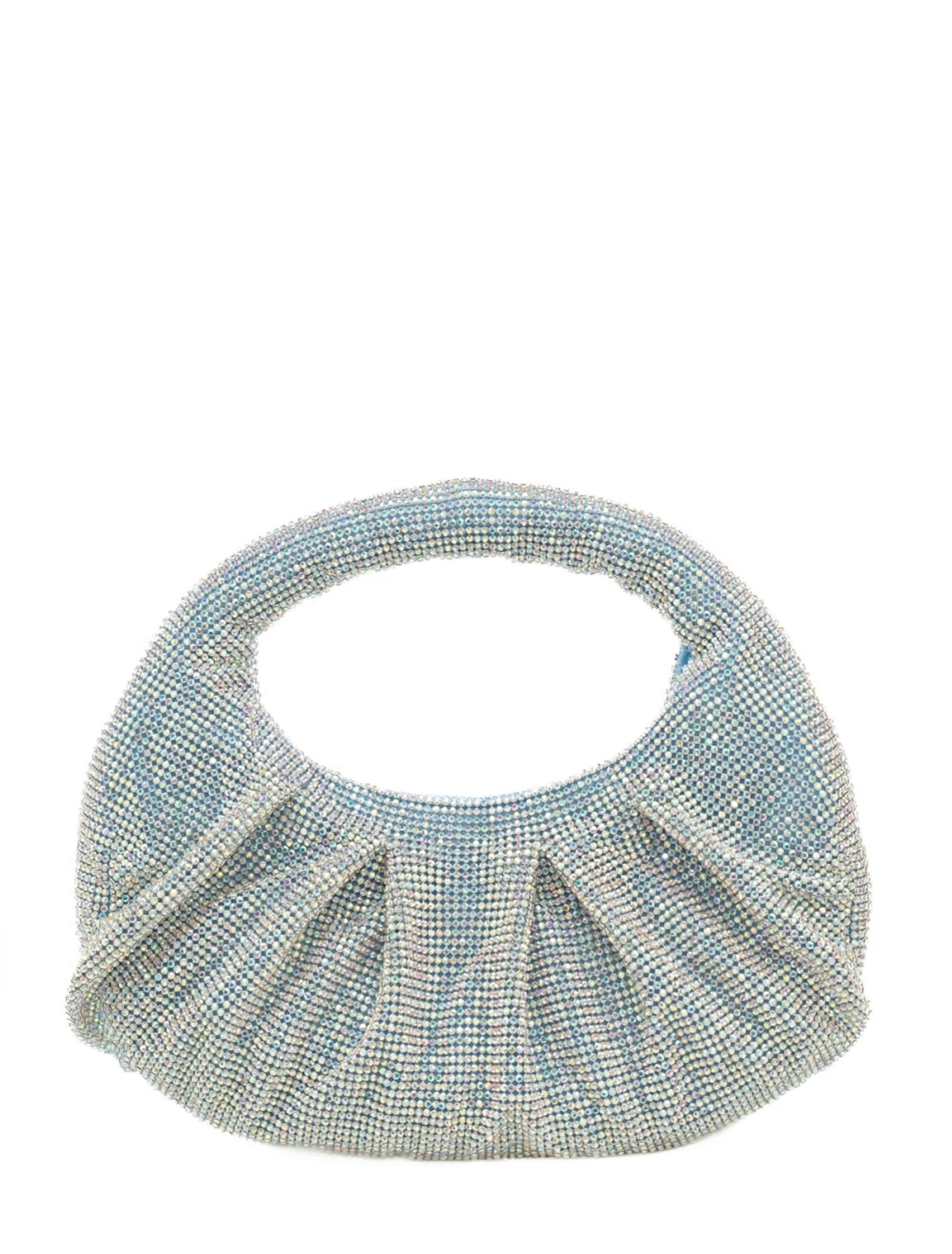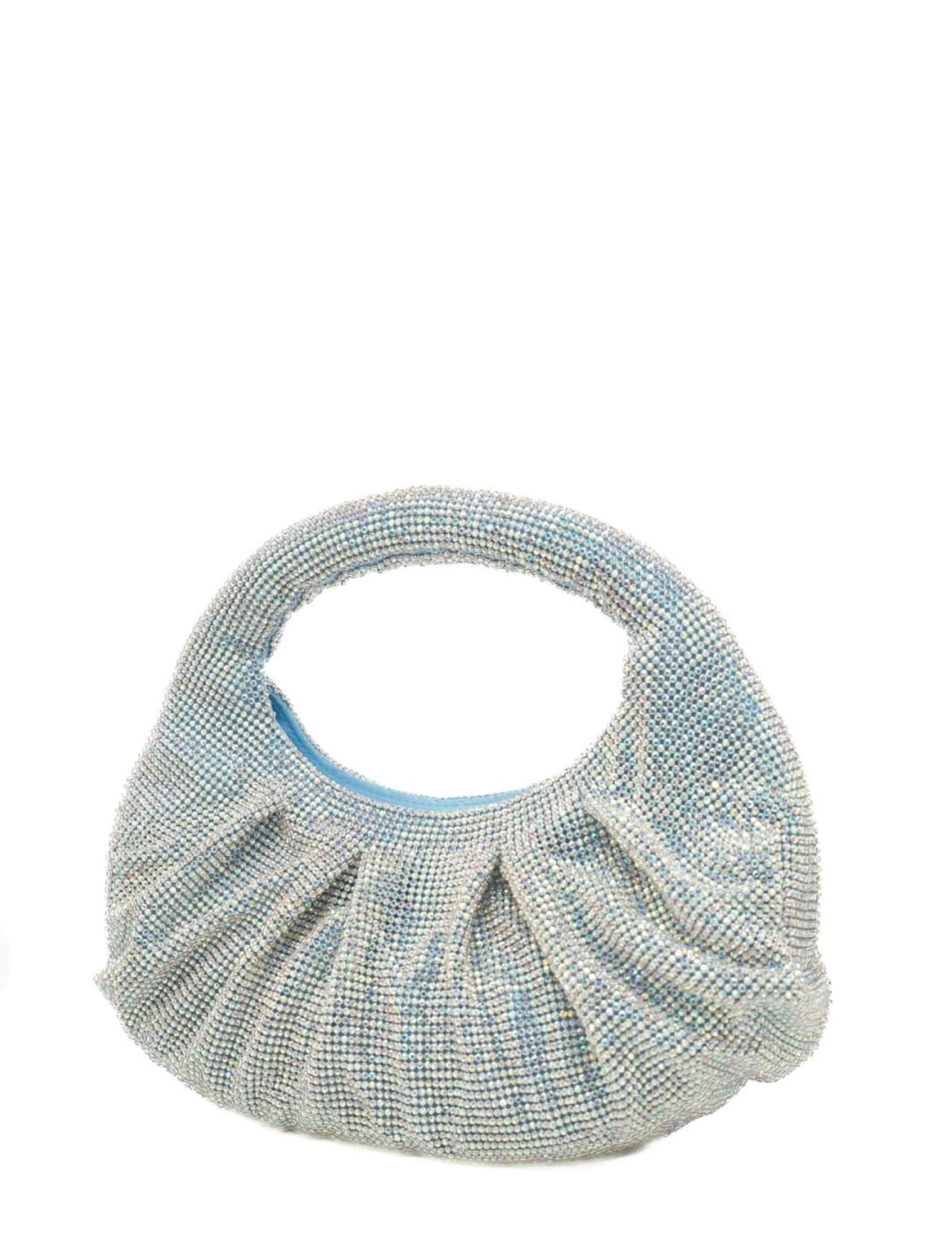 Borsa a mano in maglia strass, chiusura con cerniera, manico.
