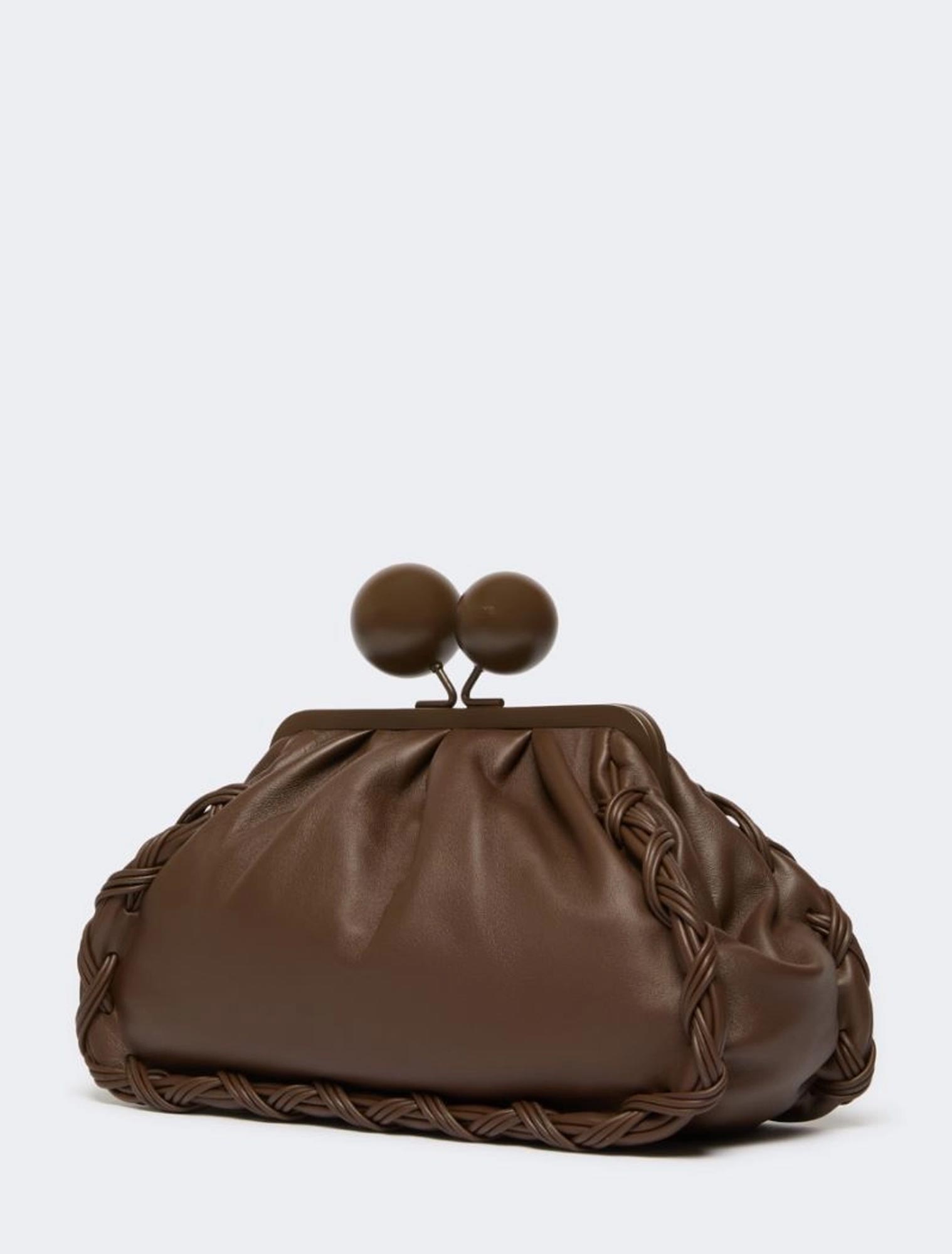 Borsa in morbida nappa e maxi piping con infilature