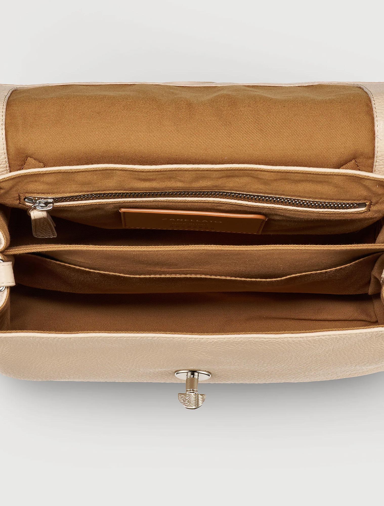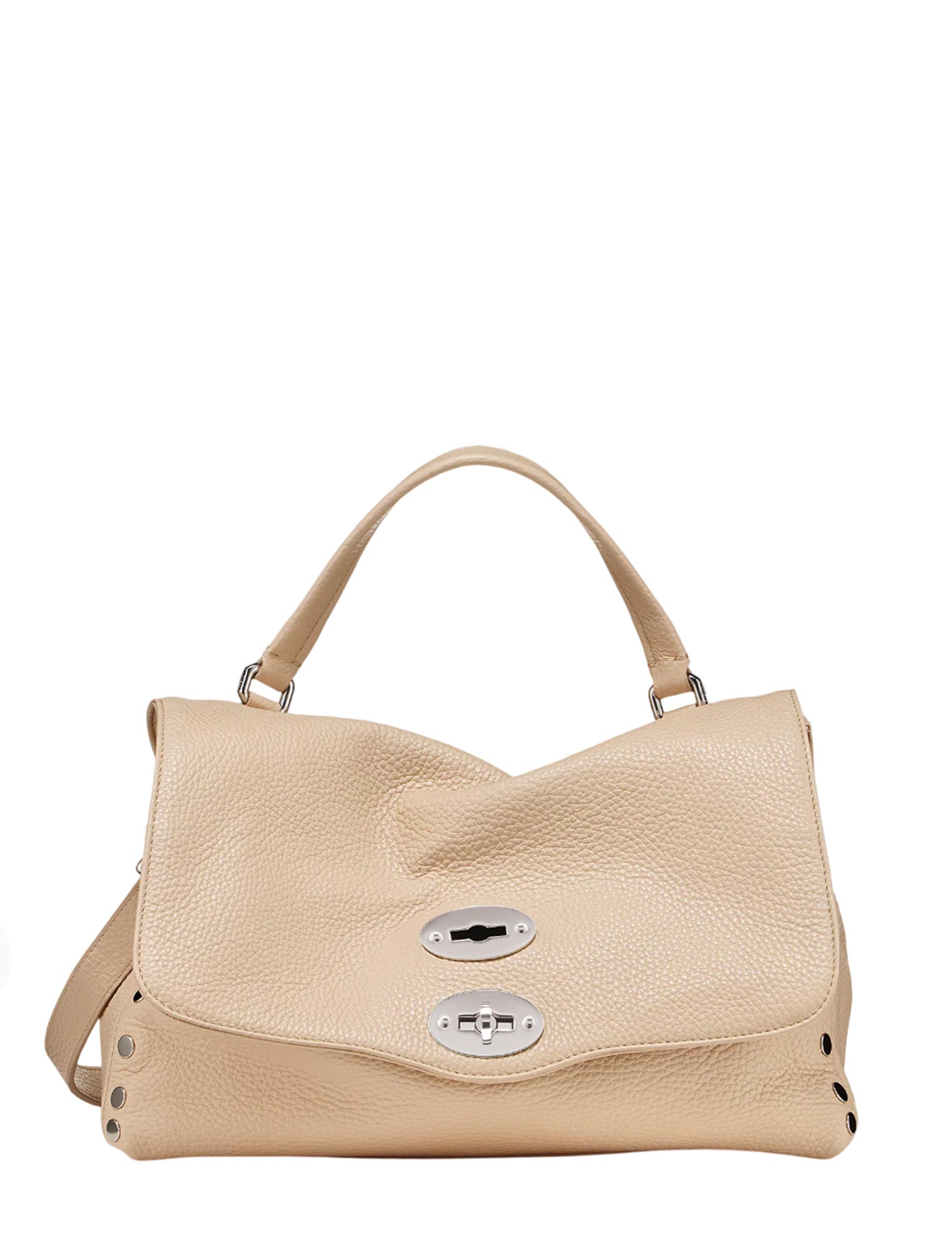 Postina, icona della Maison, caratterizzata dalla doppia chiusura e dalla sua grande versatilità può essere indossata a mano, a spalla o a tracolla.